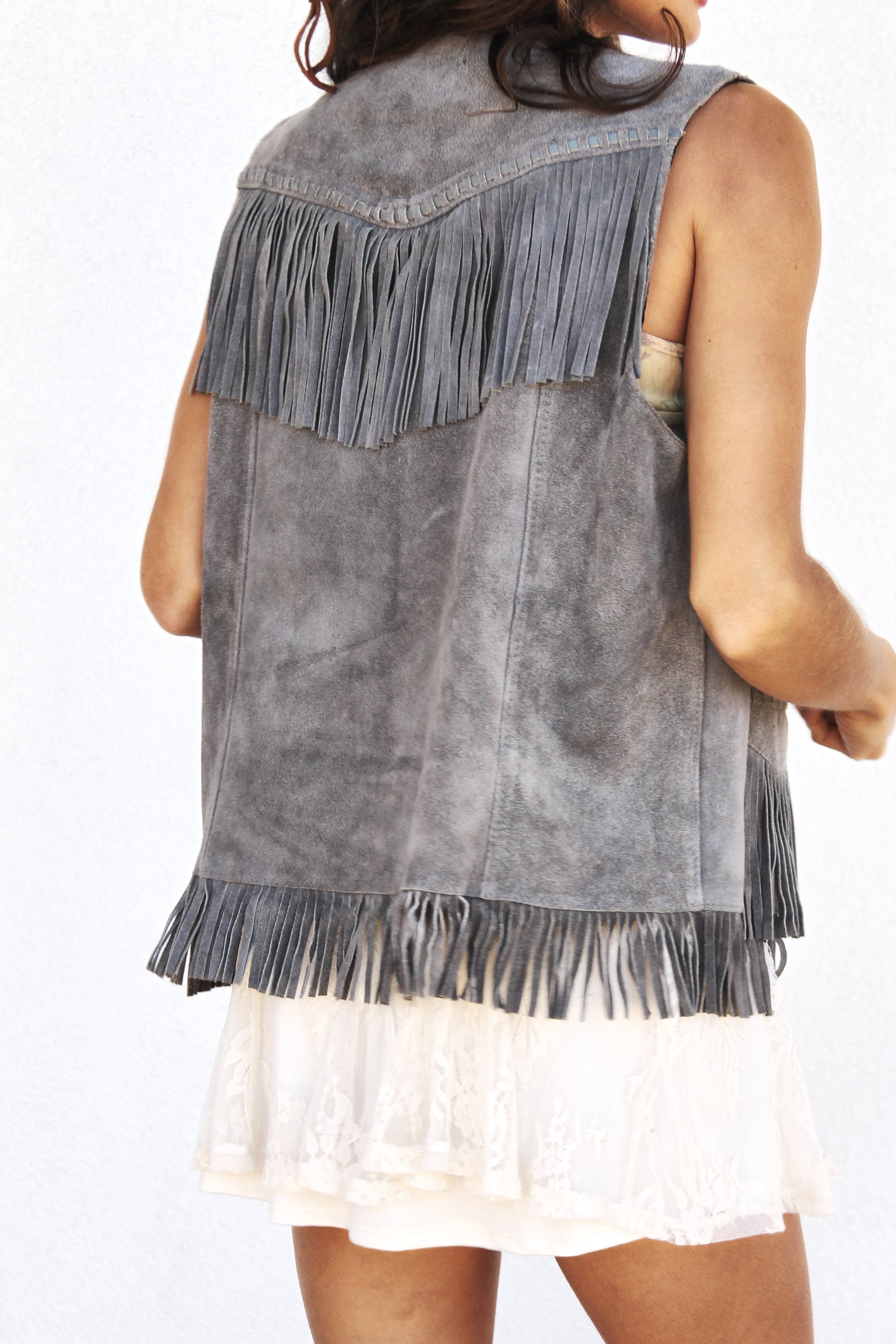 DESERT DANCER suede fringe vest, large *TRUE VINTAGE + 100% GENUINE LEATHER* >> stone gray