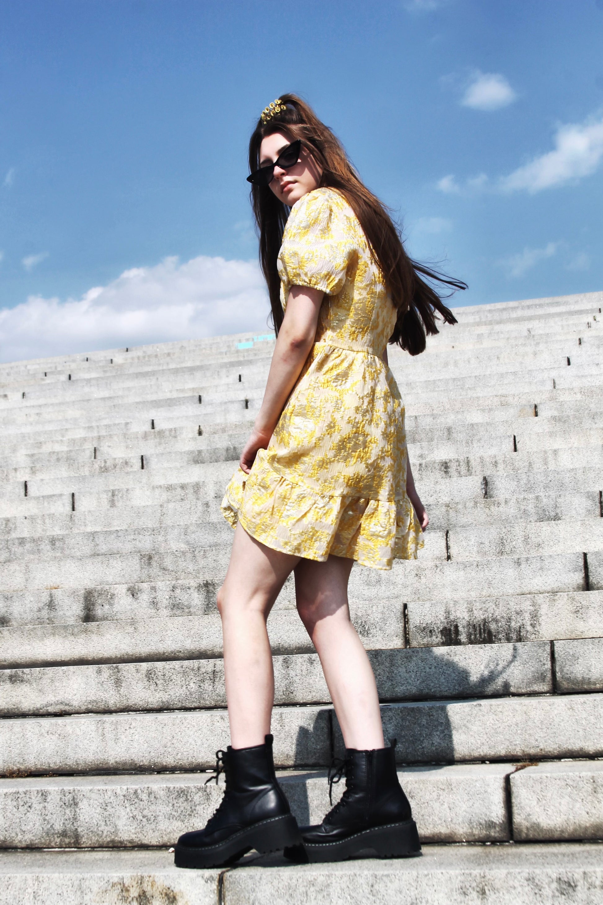 Go ahead đââď¸ sheâs a double take kinda girl.  Modern day Belle?!  We think so!! She is beautifully crafted from a luxe, satiny brocade fabric with ornate metallic embroidery, and floral motifs đ This pretty little thing gleams in such a fresh + unique way, with puff sleeves and a ruffle hem that adds just the right amount of flirt. She will be your go-to for glam nights, fashion-forward parties, or a modern-day fairytale entranceđ¸
