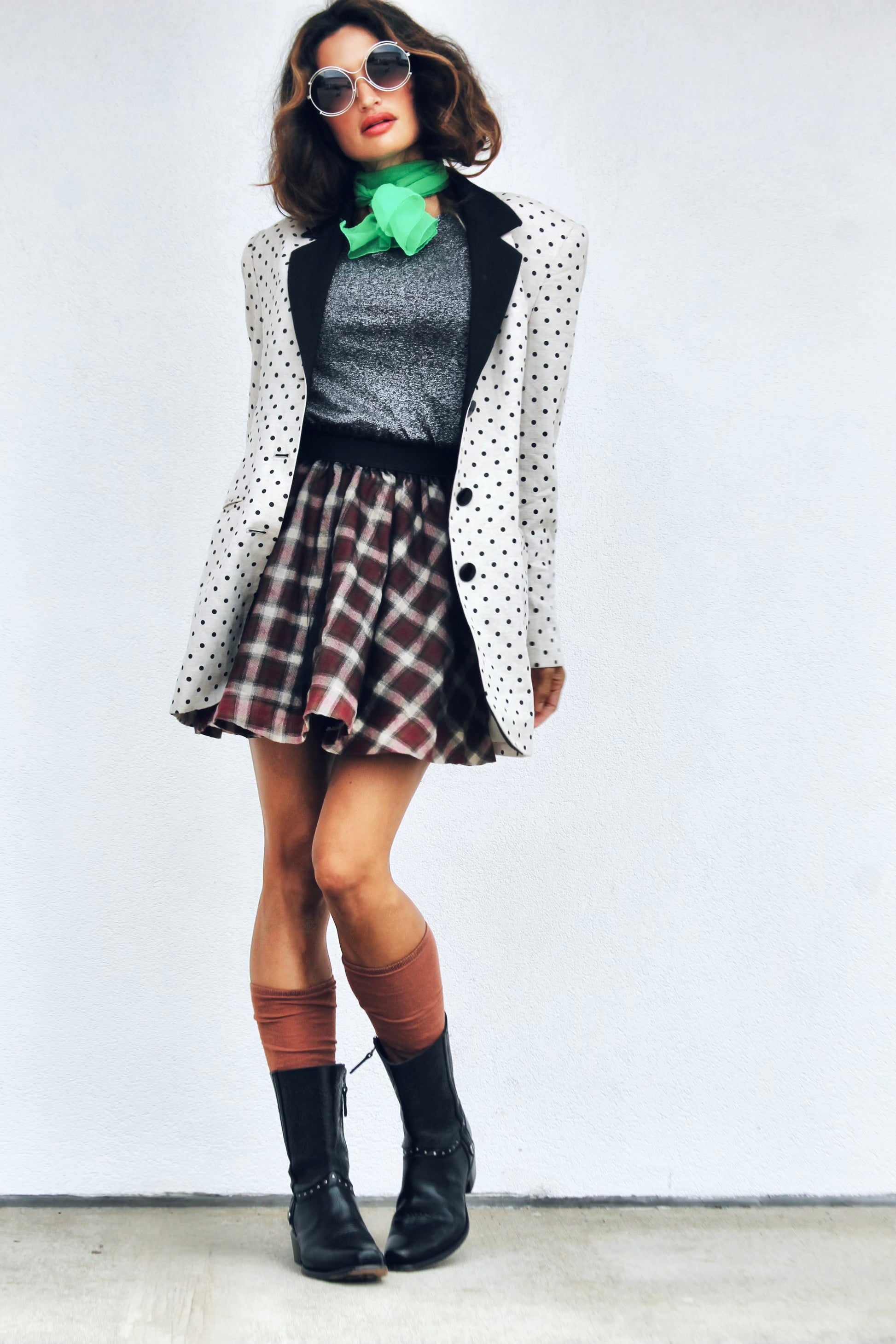 ON THE DOT polka dot blazer, size 14 *VINTAGE* >> beige w/ black dots