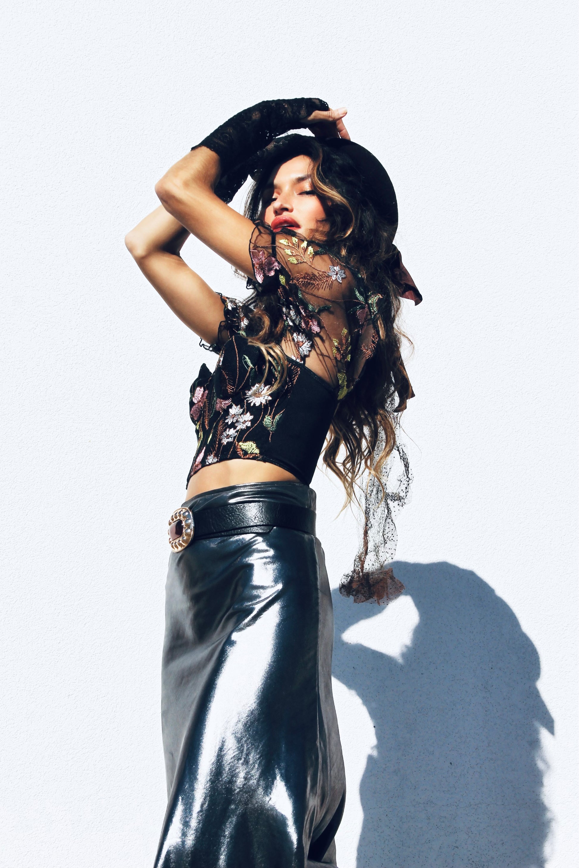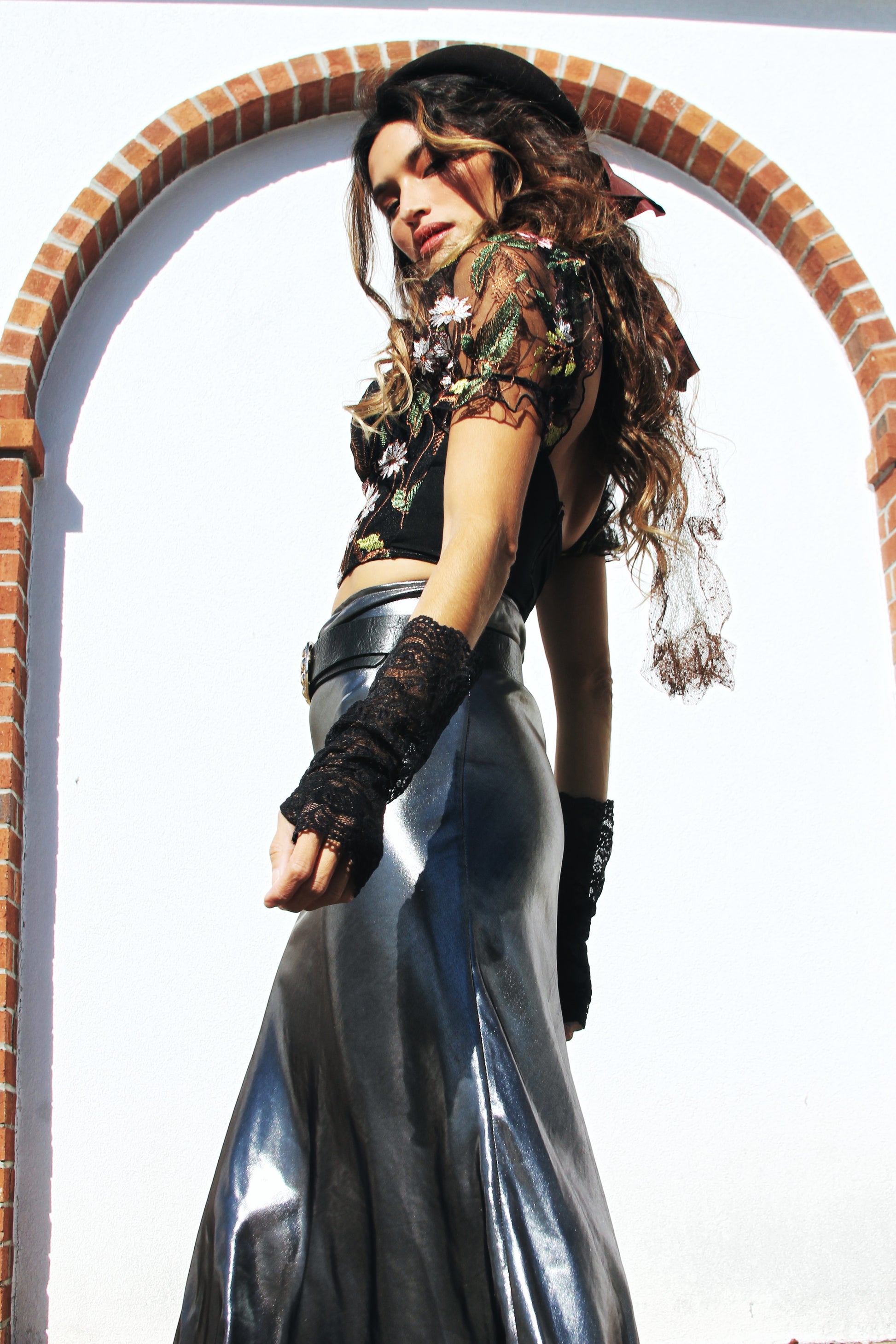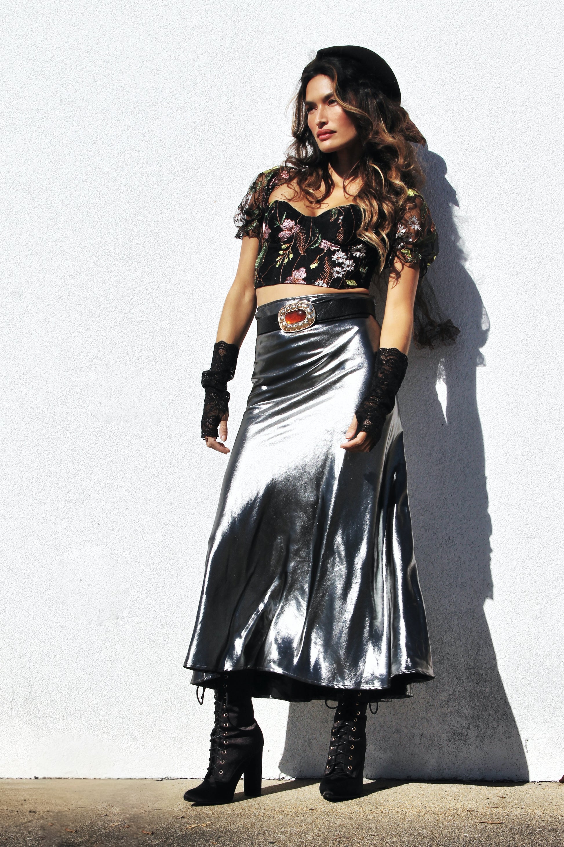 I gotta say, punk floral princess is my new favorite ascetic of 2026. She’s a garden party CRASHER with an endless list of secret admirers 😜 Her delicate floral appliqués dance across the inky canvas like pressed petals in a love letter you may never even send. They're soft, they're sweet, they're just enough contrast to keep things interesting. The cropped hem? A cheeky wink that says you're not just here for a good time- you’re here for a long time ❤️🔥 The vibe? Romantic chaos and we are HERE FOR IT 🙌