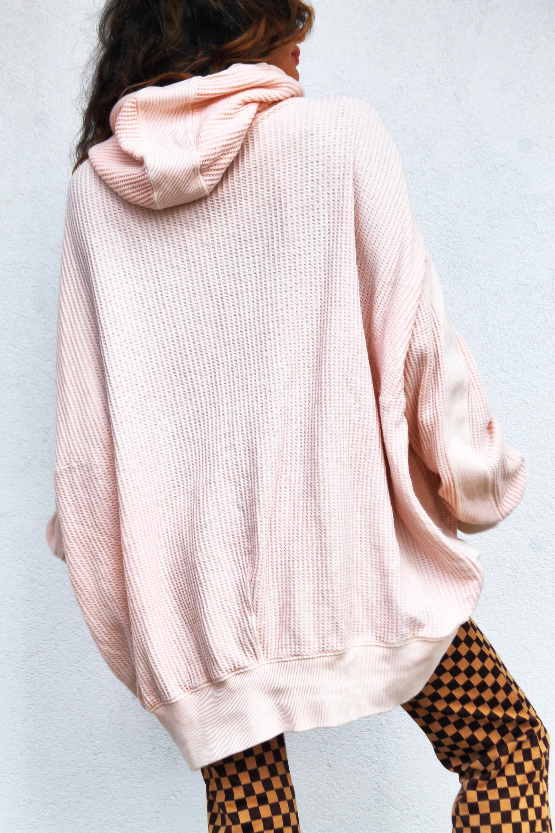 HEART MAKER waffle knit + oversized hoodie, large *FREE PEOPLE* >> bubble gum pink